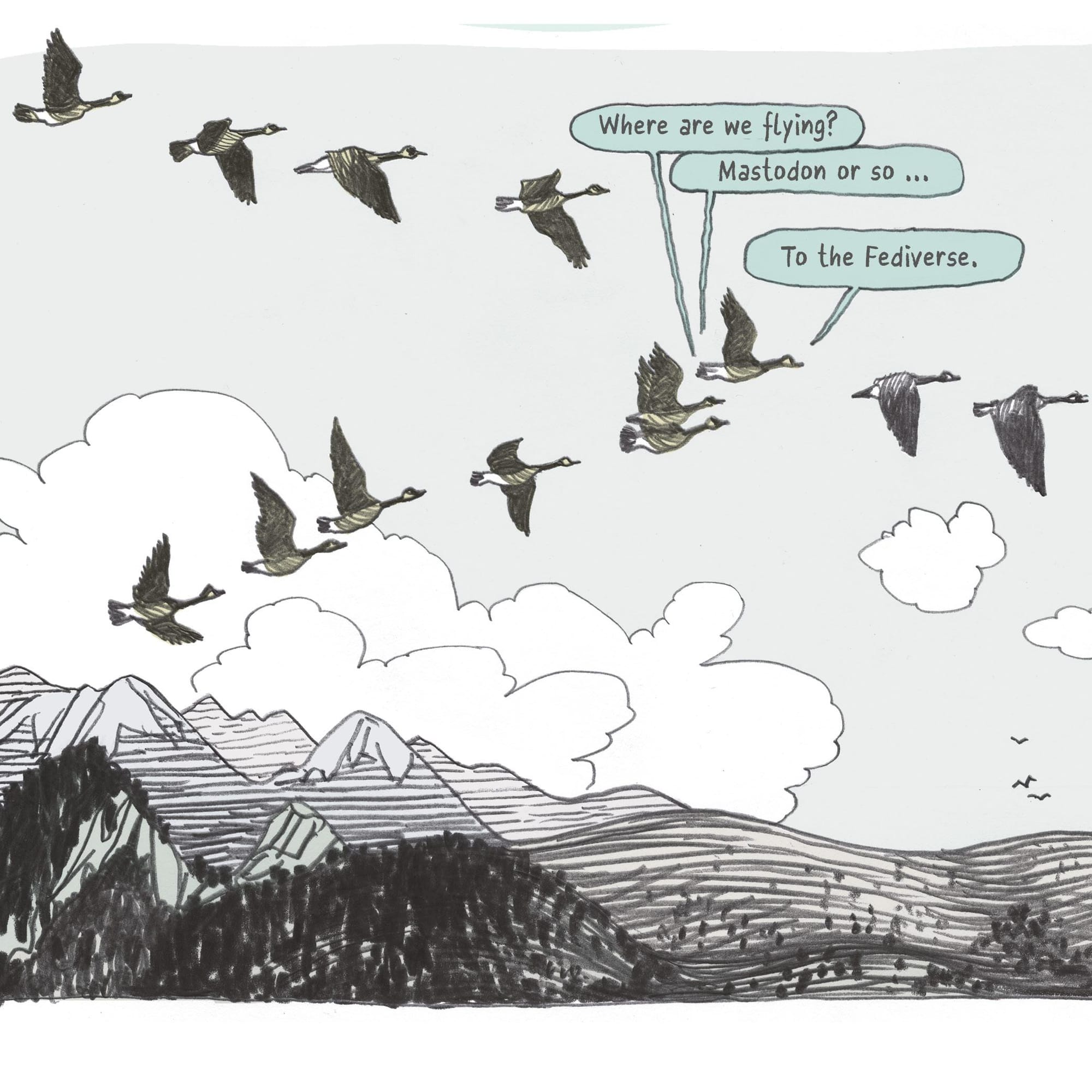 Short comic strip about moving to the Fediverse. Kind courtesy of Ulli Lust (thank you!)